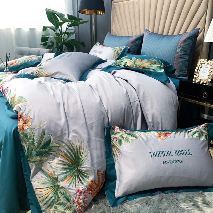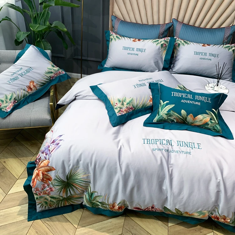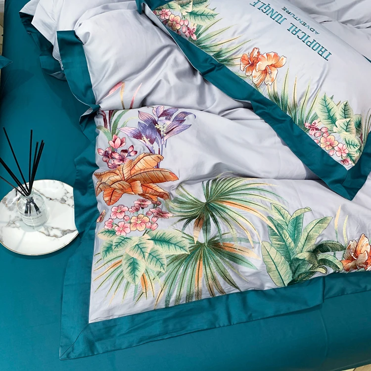 Special Offer Estilo Americano Planta Flor Bordado Algodão Egípcio Conjunto De Cama Rainha Rei Capa Edredon Folha Fronhas Têxteis Para Casa Discount (43%OFF) Today!