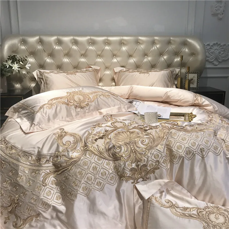 Special Offer Luxo Super Macio Damasco Sateen Algodão Egípcio Champagne Conjunto De Cama 4 Peças Premium Chic Bordado Capa Edredão Folha Conjunto Discount (43%OFF) Today!