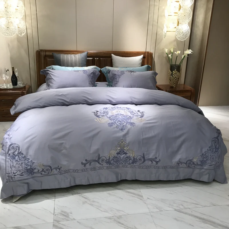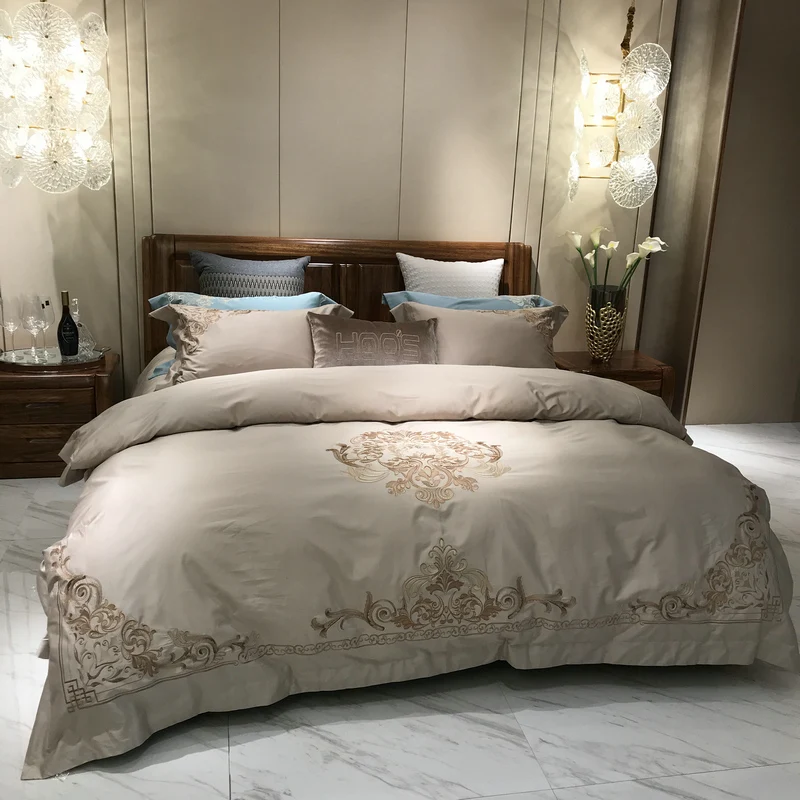 Special Offer Azul Dourado De Luxo Rainha Do Rei Jogo Cama Algodão Egípcio Bordado Lençóis/linho Conjunto Edredão/colcha Capa 40 Discount (25%OFF) Today!