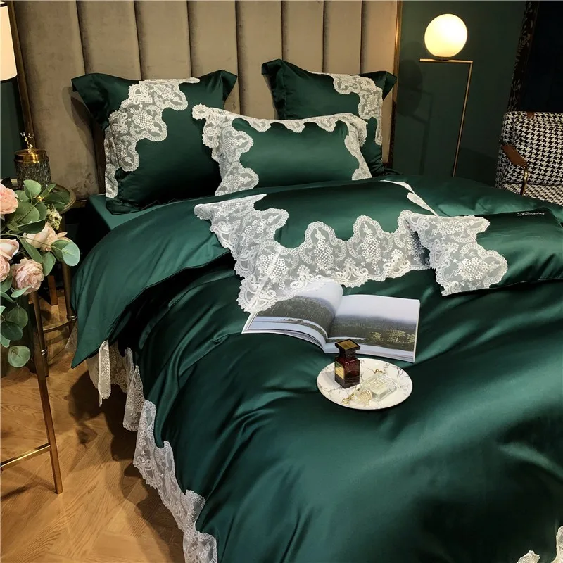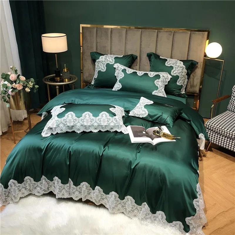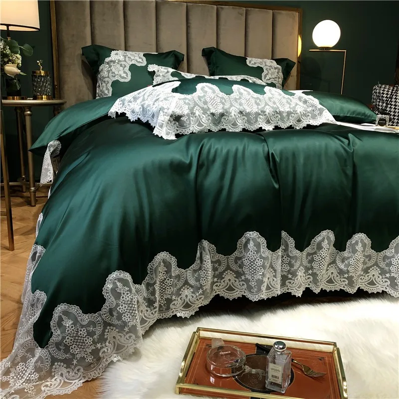 Special Offer Laço Capa De Edredão Rainha Rei Cetim Seda Algodão Egípcio Hipoalergênico Verde Do Vintage Cama Consolador Capa Folha Fronha Discount (50%OFF) Today!