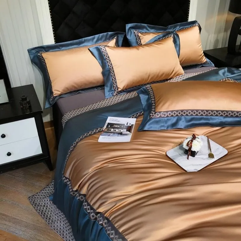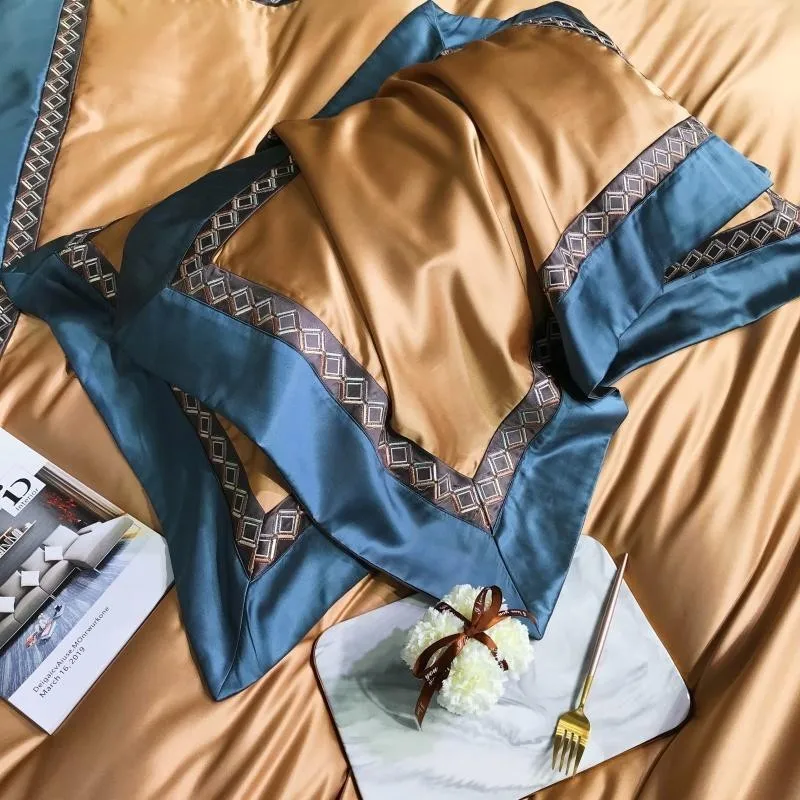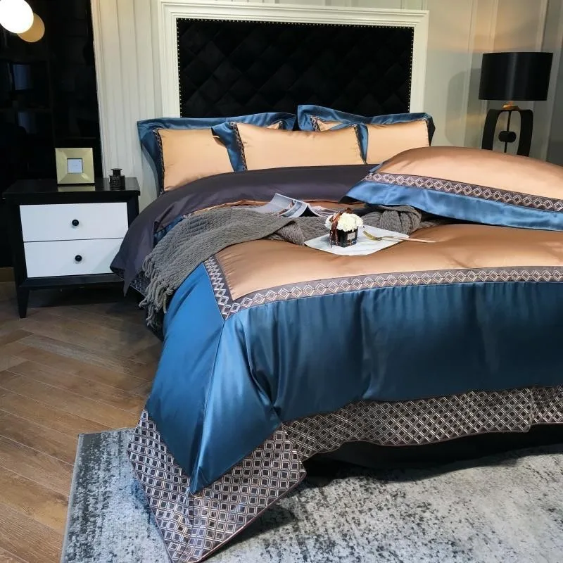 Special Offer Azul Dourado Retalhos De Luxo Conjunto Capa Edredão Seda Cetim Algodão Conjunto Cama 4 Pçs Edredon Consolador Capa Fronhas Discount (43%OFF) Today!