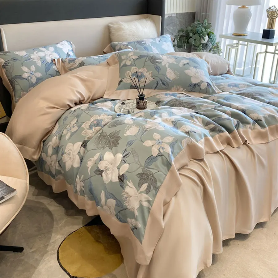 Special Offer Conjunto De Cama Floral Azul Pastoral Do Vintage, Retro Americano Rústico Rainha Completa Rei Casa Têxtil Folha Fronha Capa Edredão Discount [NEW!!] Today!