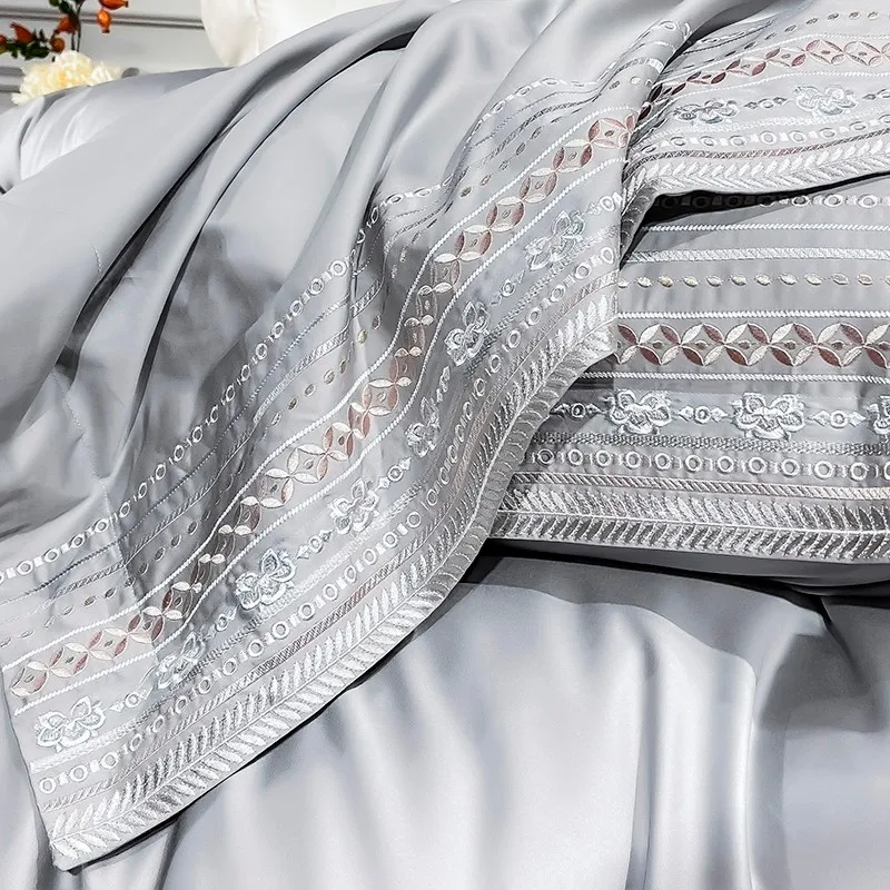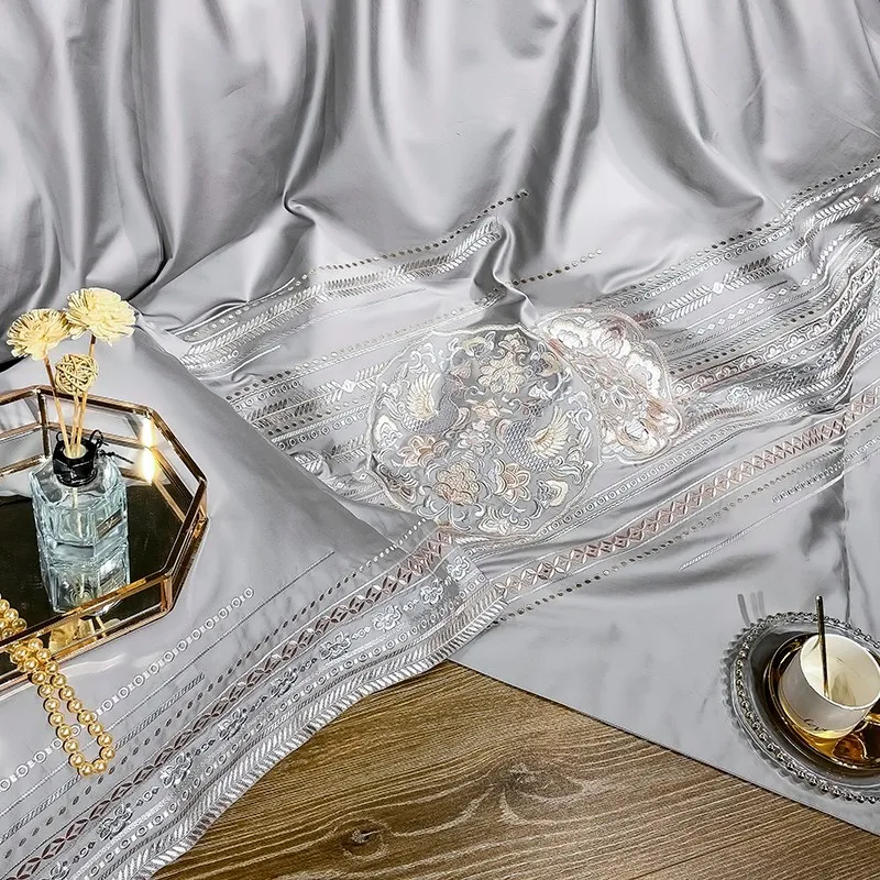 Special Offer Luxo Chique Bordado Conjunto Capa De Edredão 800tc Algodão Egípcio Premium Cinza Conjunto Cama Folha Fronhas Rainha Rei Tamanho Discount [NEW!!] Today!