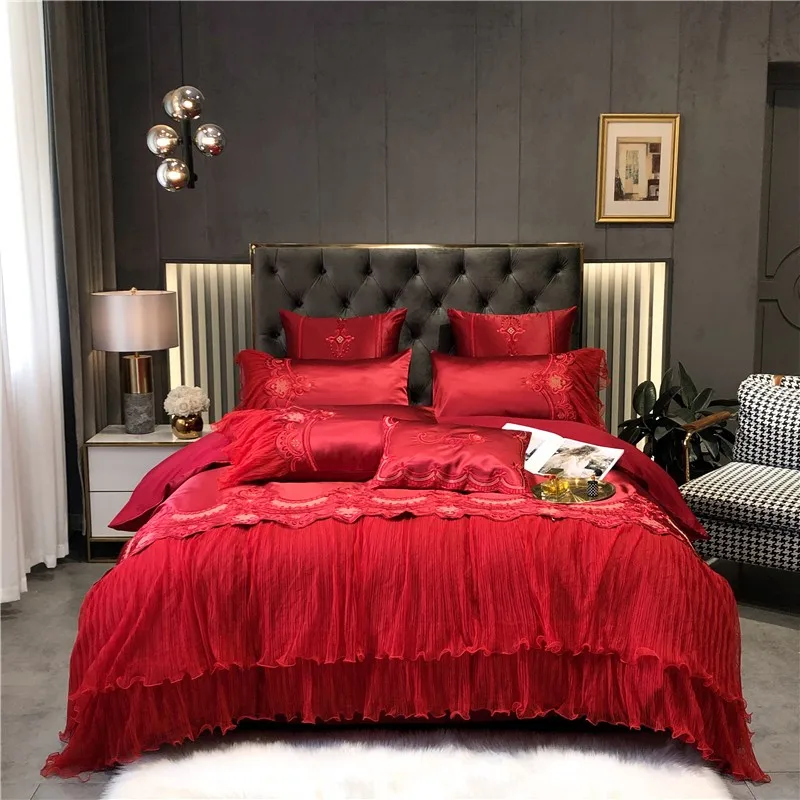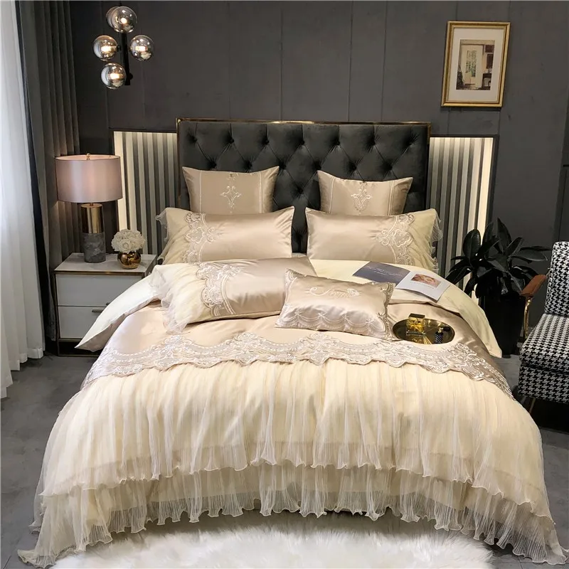 Special Offer 1200tc Cetim Sedoso E Algodão Conjunto De Cama Ouro Dupla Camada Rendas Plissado Capa Edredão Conjunto Folha Fronha Rainha Rei 4/7 Pçs Discount (25%OFF) Today!