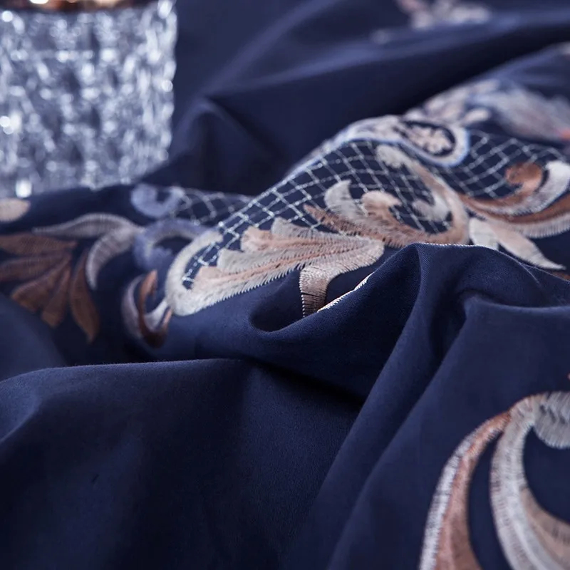 Special Offer 4 Pçs Azul Conjunto De Capa Edredão Qualidade Algodão Egípcio 1000tc Bordado Conjunto Cama Folha Rainha Rei Tamanho Rugas Resistente Macio Discount (25%OFF) Today!