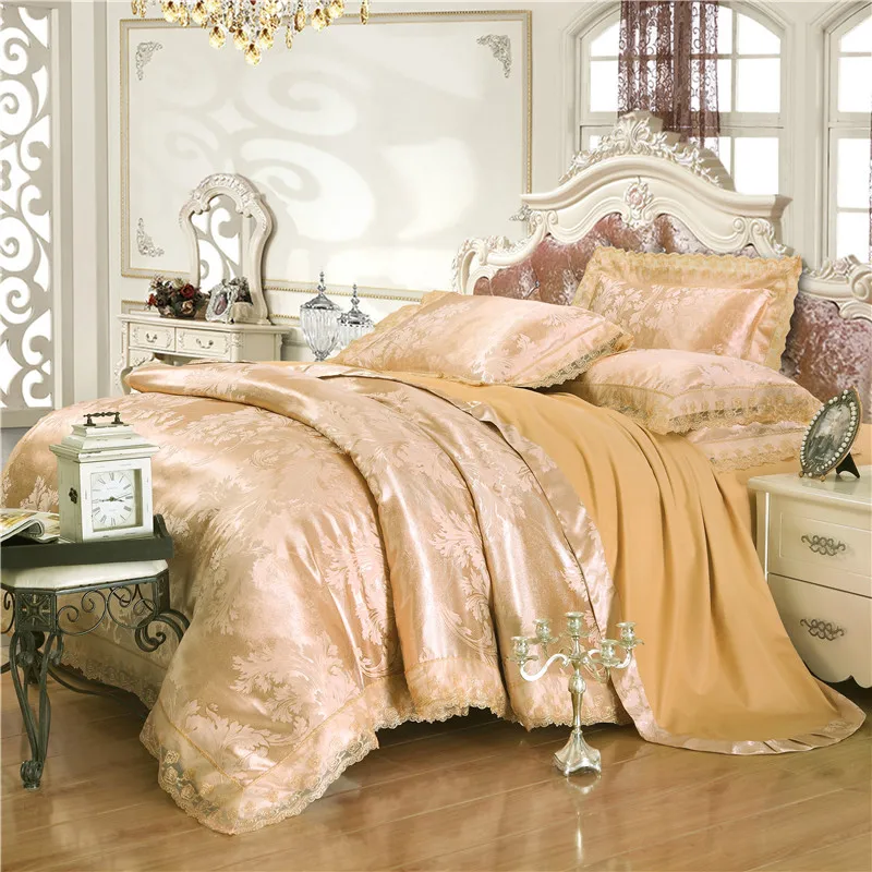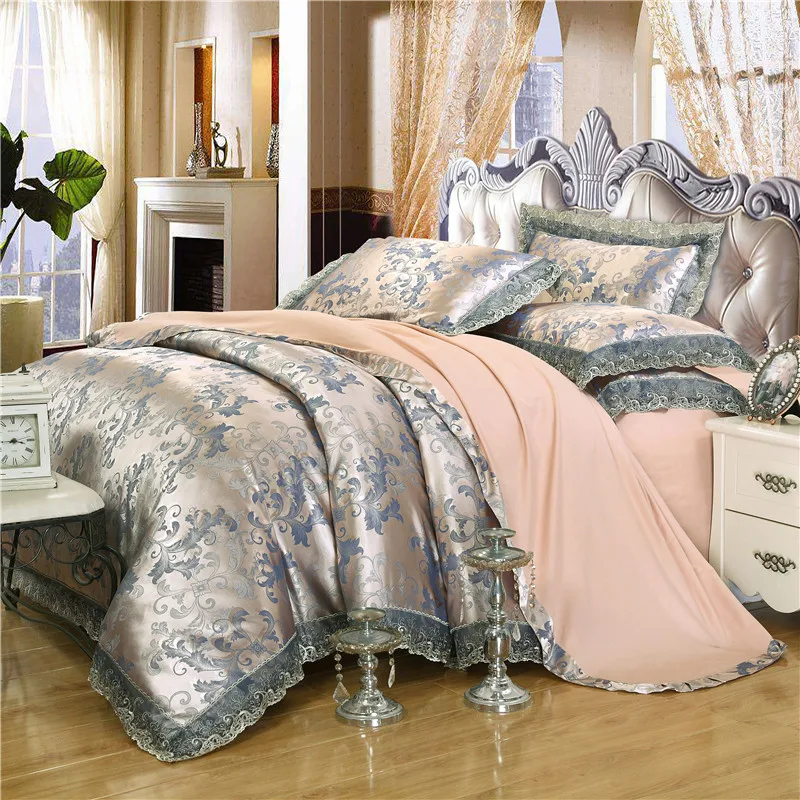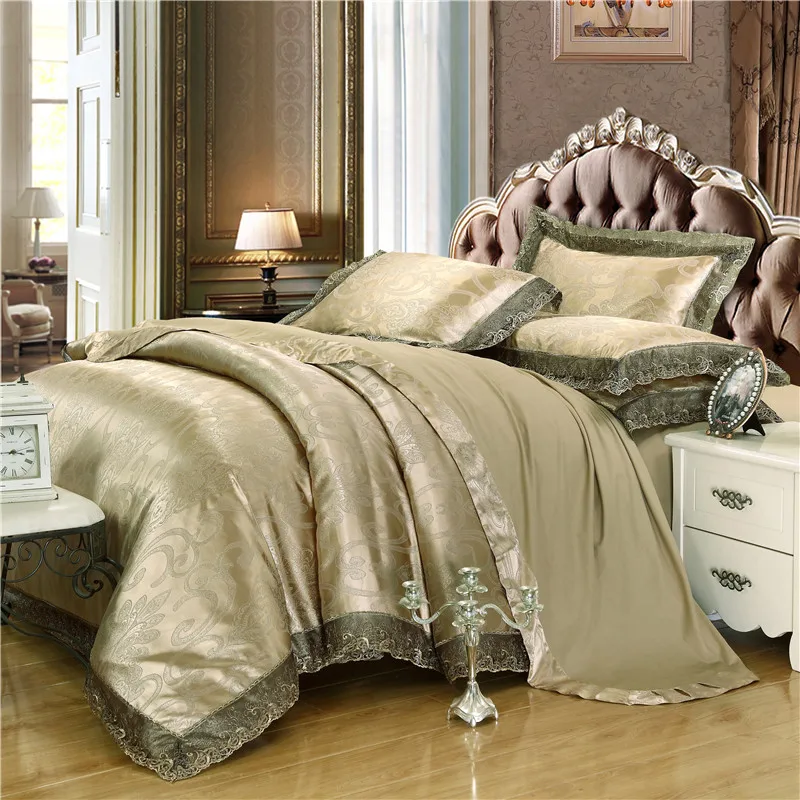 Special Offer Nova Mancha De Prata Jacquard Jogo De Cama De Luxo Rainha Rei Do Ouro Do Café Jogo De Cama 4 Pcs Conjuntos De Folhas De Cama Capa De Edredão De Algodão De Seda Do Laço Discount (25%OFF) Today!