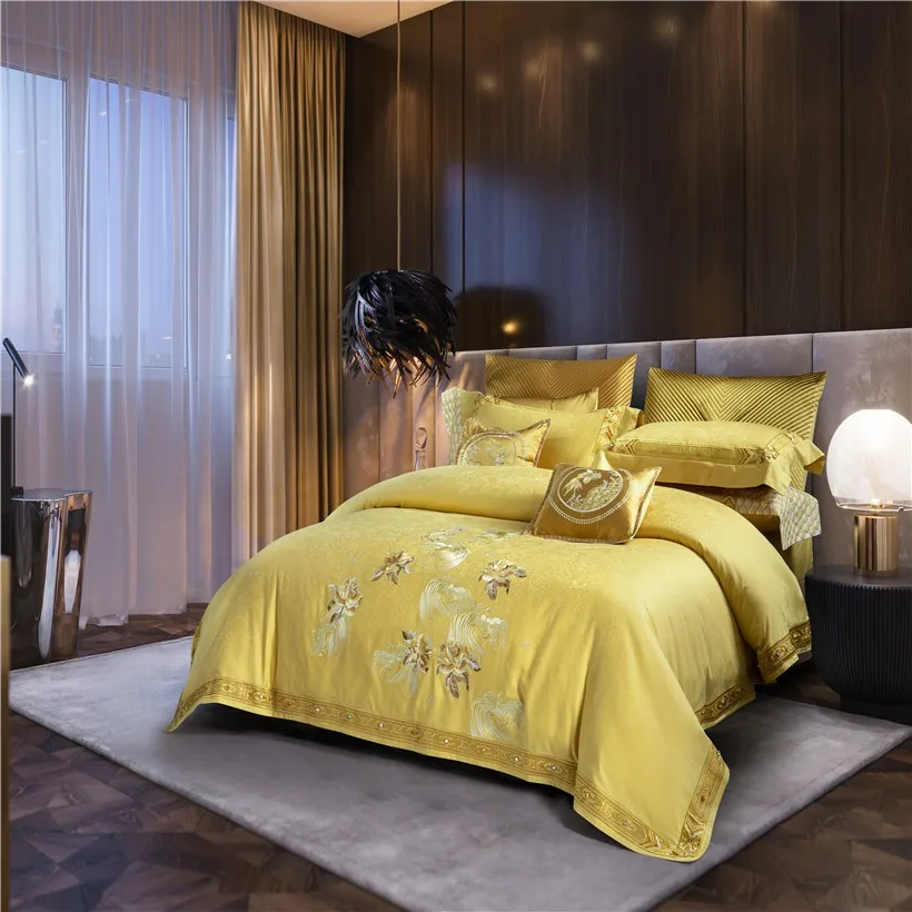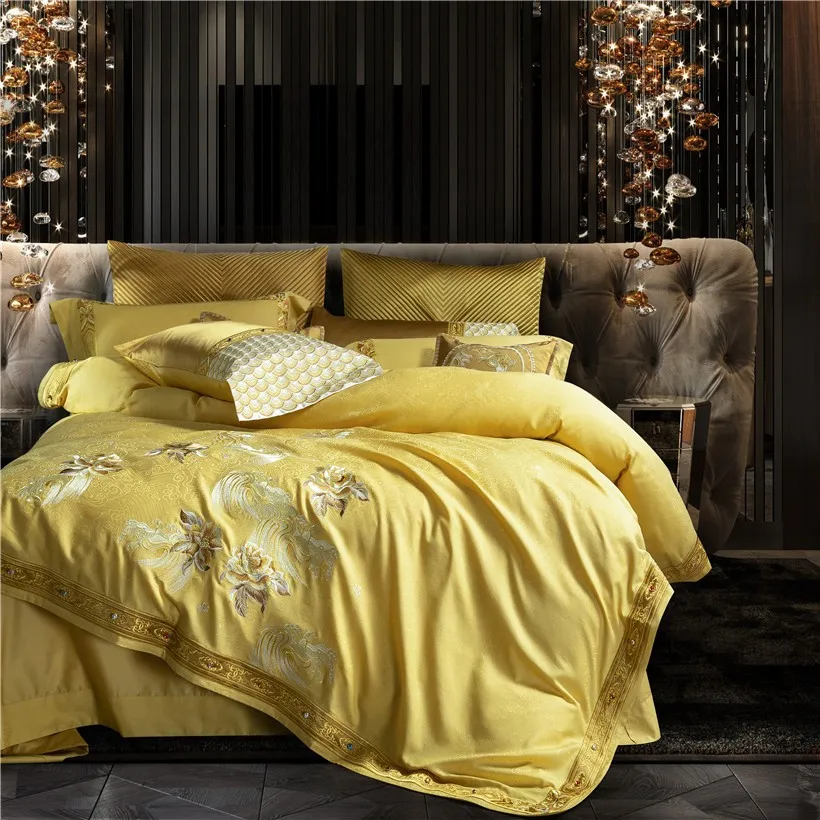 Special Offer Chique Casa 4/6/9 Peça Aubrey Decorador Amarelo Consolador Capa Conjunto E Folha De Cama Travesseiro Shams Completa Rainha Amarelo Com Bordado Discount (25%OFF) Today!