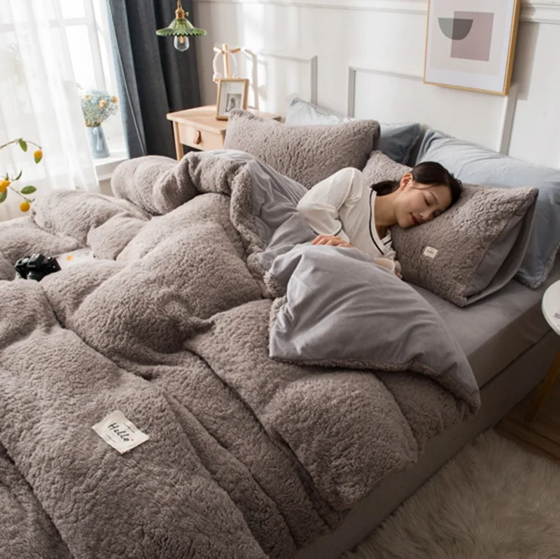 Special Offer Conjunto De Cama De Pelúcia Do Falso Inverno Roupas De Cama Preto Capa De Cama Folha Plana Fronha/um Lado Cordeiro Cashmere + B Flanela Lateral/retalhos Discount (25%OFF) Today!