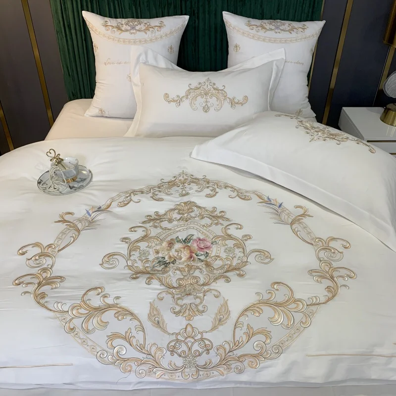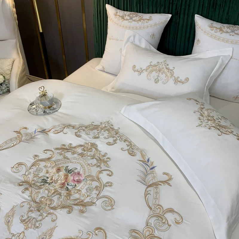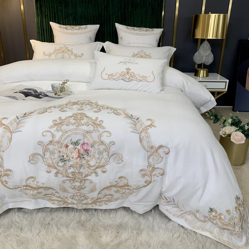 Special Offer Luxo Branco Cetim De Seda Algodão Confortável Conjunto Cama Queen Size Bordado Duvet Cover Folha Fronhas Casa Têxtil Discount (43%OFF) Today!
