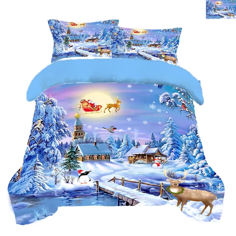 Special Offer Jogo De Cama Infantil Saudável, 3d, Cor Azul, Forros, Capa De Edredom, Lençol, Fronhas, Natal, Neve, Cervo, árvore E Discount [NEW!!] Today!