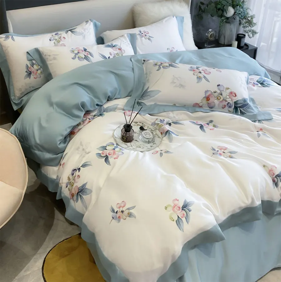 Special Offer Azul Pastoral Do Vintage Bonito Conjunto De Cama Menina, Retro Americano Rústico Rainha Completa Rei Casa Têxtil Fronha Capa Colcha Discount [NEW!!] Today!