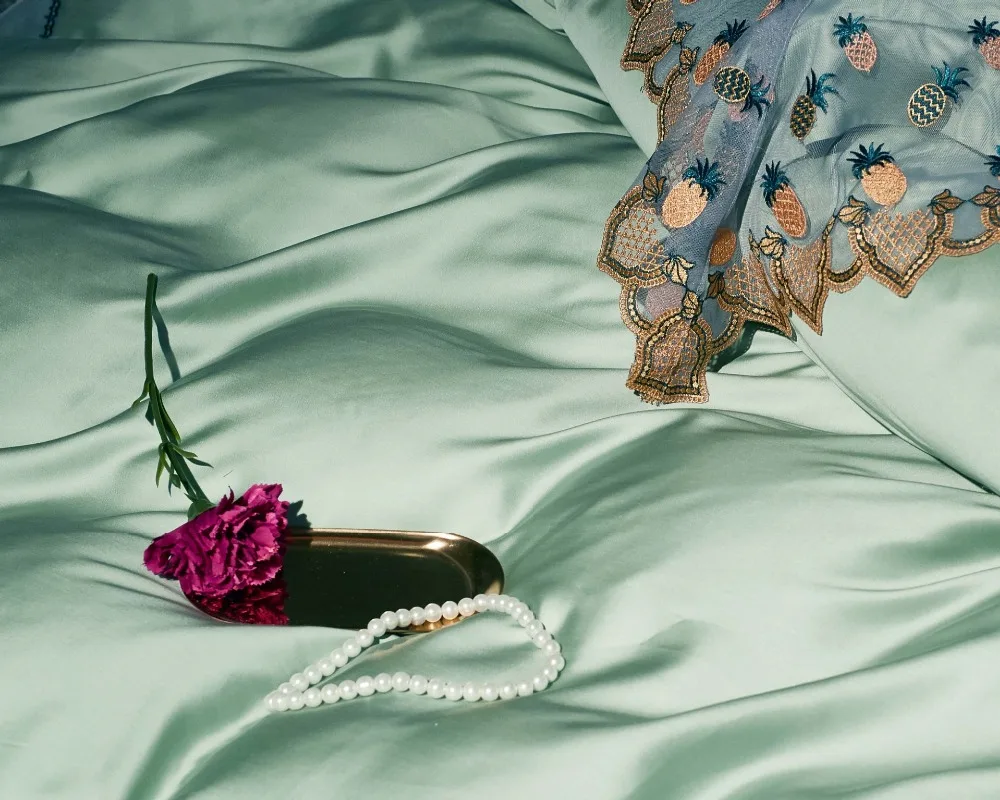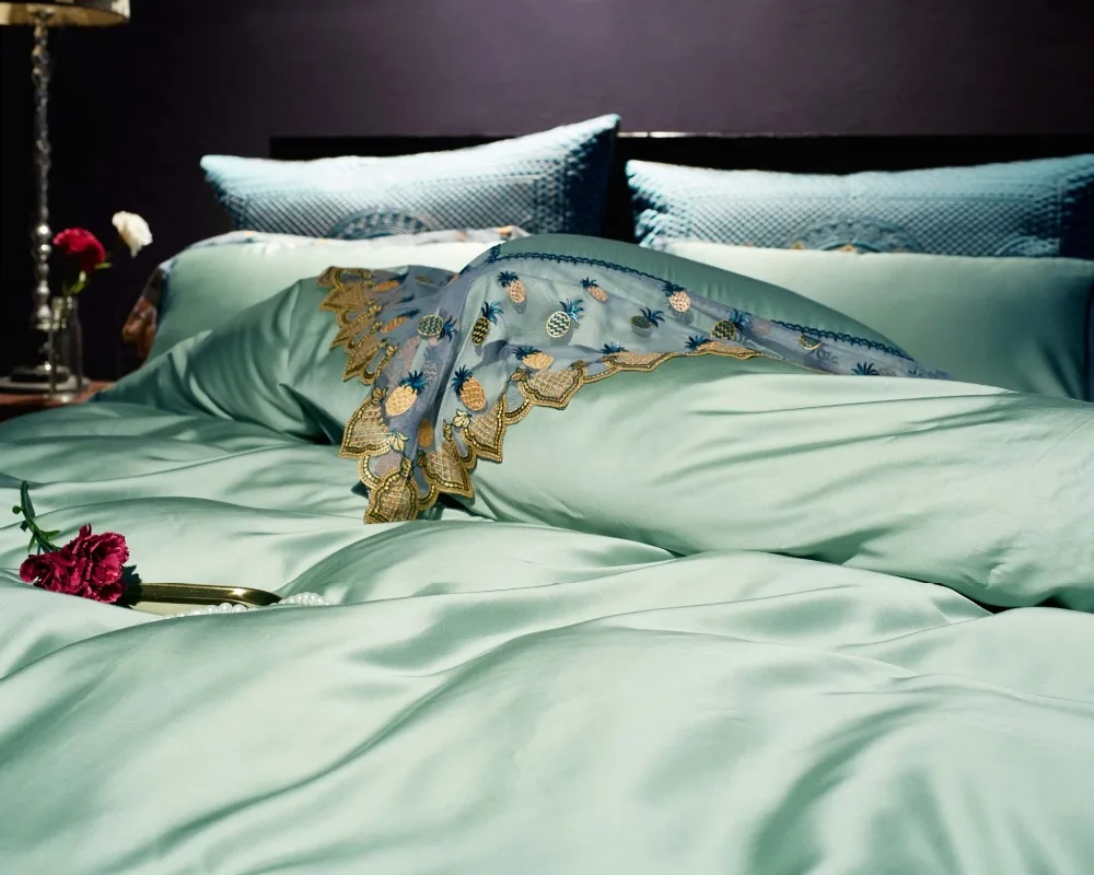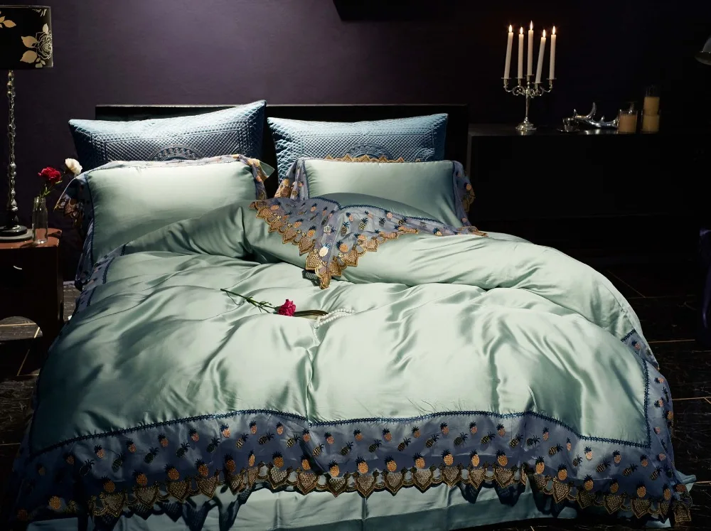 Special Offer Nobre Azul 80 S Tencel Bordado Borda Do Laço Conjuntos De Cama De Luxo Rainha Rei Capa De Edredão Folha De Cama Real Definir Europa 4/6 Pcs Verde Discount [NEW!!] Today!