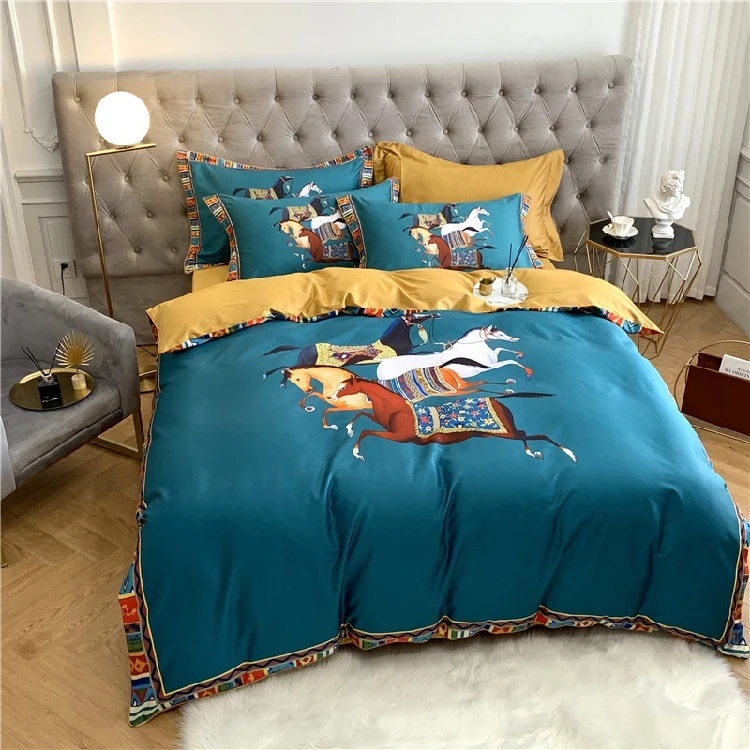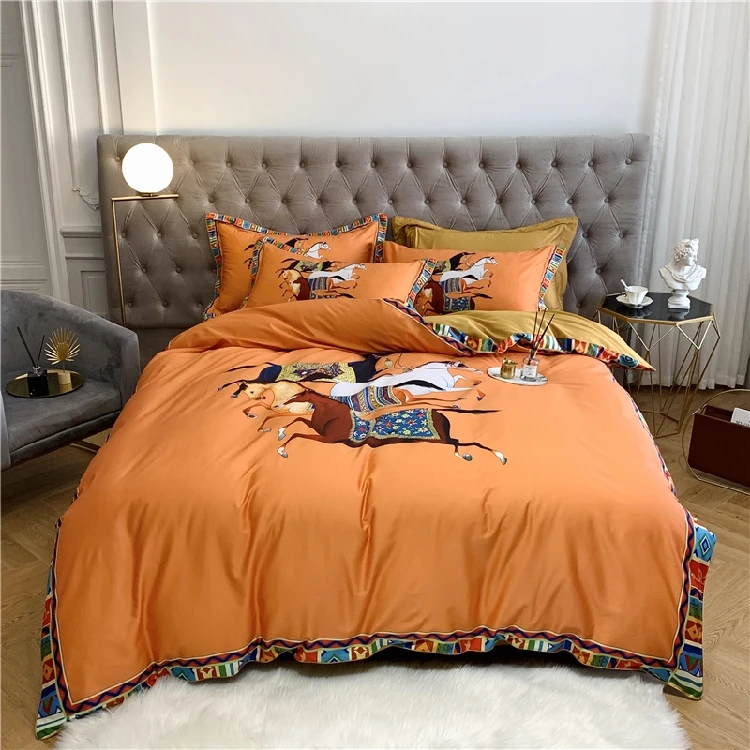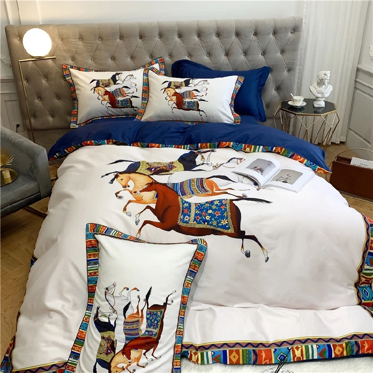Special Offer 100% Algodão Egípcio Conjunto De Cama Luxo Cavalo Rosa Capa Edredão King Size Rainha Folhas Cama Em Um Saco Colcha Capas 4 Pçs Discount (25%OFF) Today!