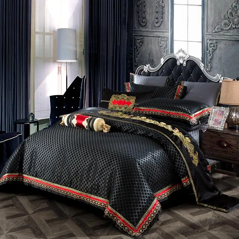 Special Offer Conjunto De Cama De Cetim Real De Luxo, Azul, Preto, Seda, Tamanho King/queen, Conjunto Com Lençol, Fronha, Capa De Edredom Discount (25%OFF) Today!