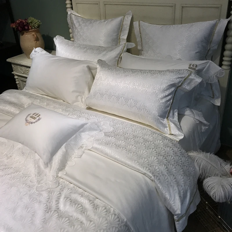 Special Offer Algodão Egípcio Bege Branco Luxo Conjunto De Cama Jacquard Rei Rainha Tamanho Conjunto Capa Edredon Folha Conjunto Roupa Fronha Discount (40%OFF) Today!