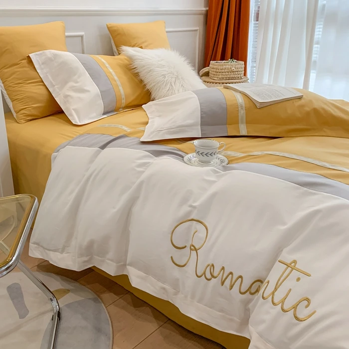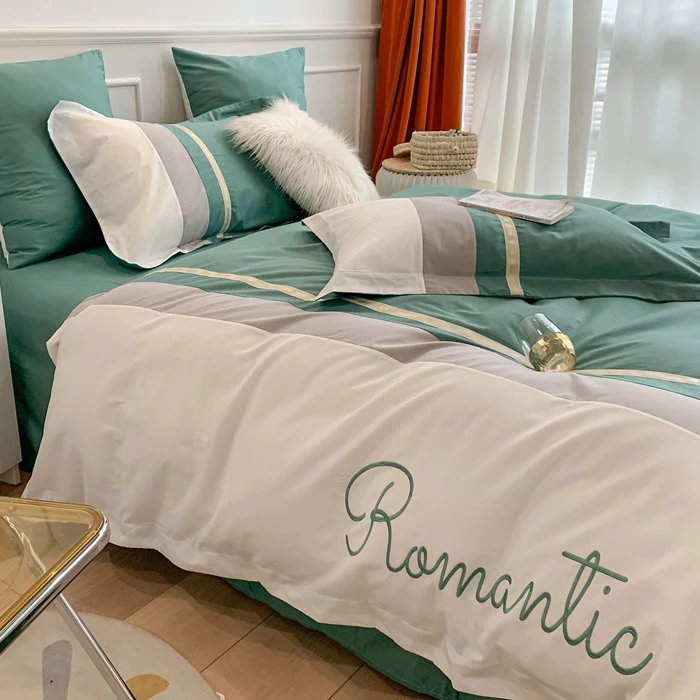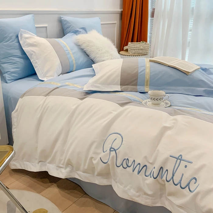 Special Offer Luz De Luxo Puro Algodão Quatro Peças Conjunto 100 Algodão Folha De Cama Costura Colcha Capa Moderna Simples Americano Discount (50%OFF) Today!