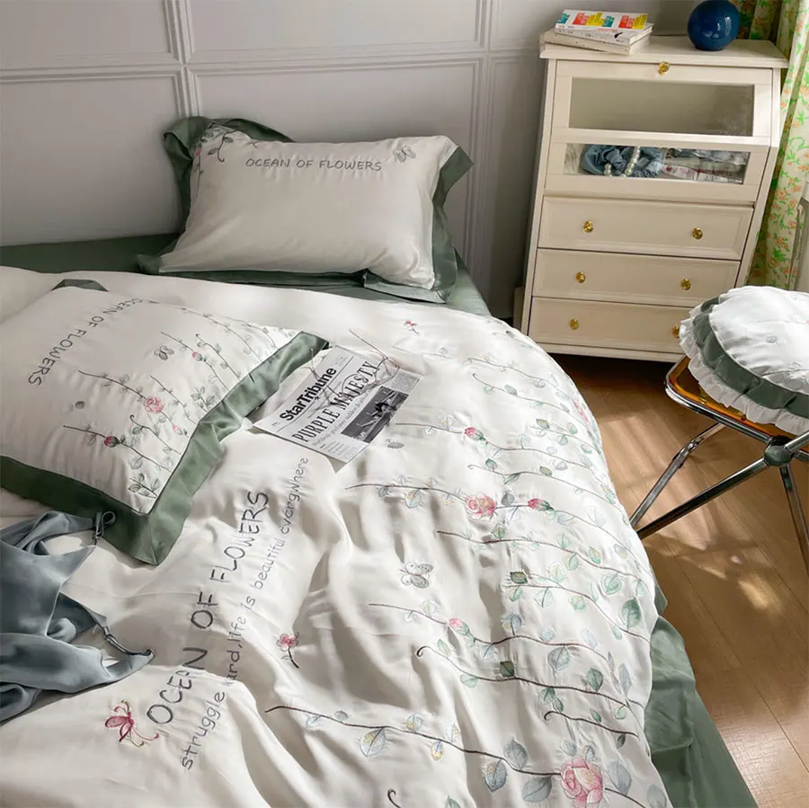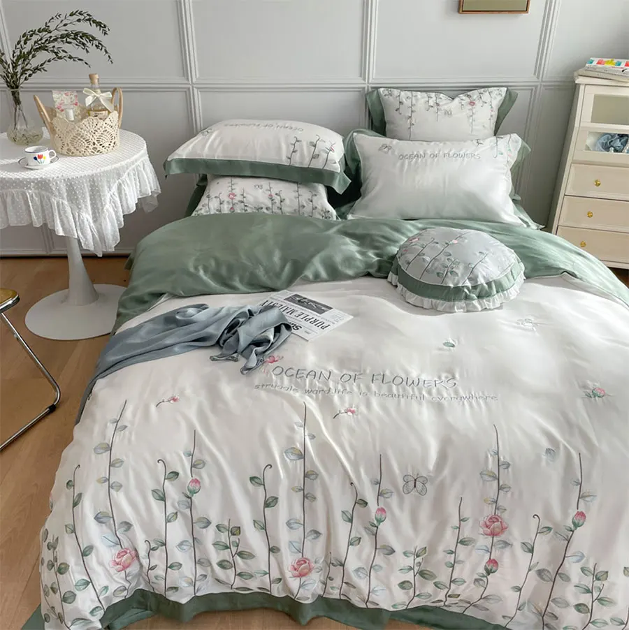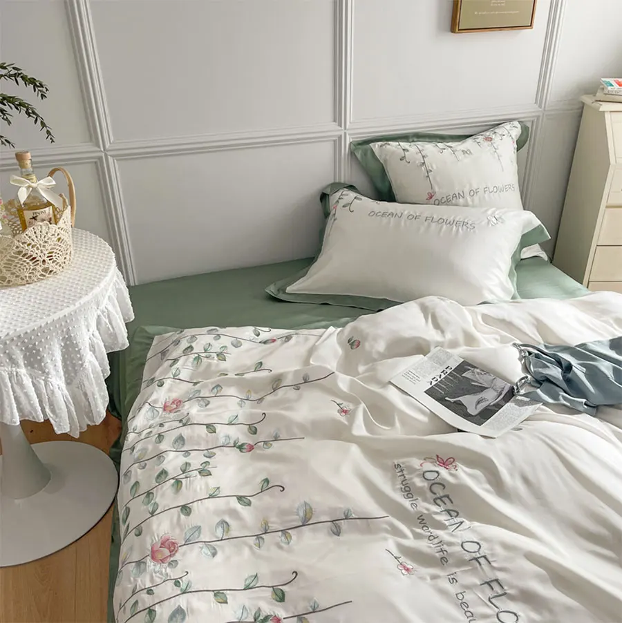 Special Offer País Da América Europeia Pastoral Flor Conjunto De Cama, Folha Verde Rainha Cheia Rei Casa Têxtil Folha Fronha Colcha Capa Discount (43%OFF) Today!