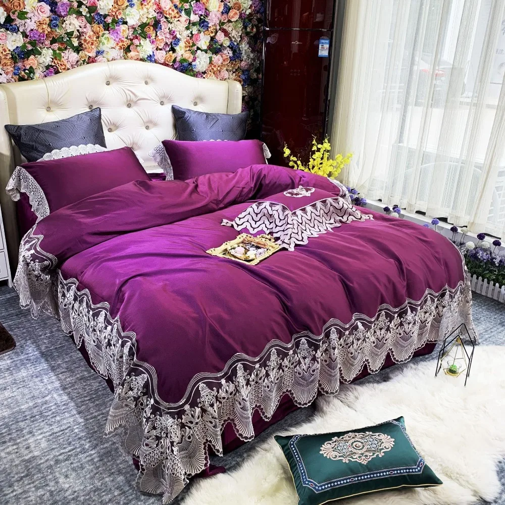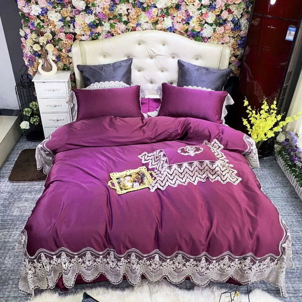 Special Offer Nobre Roxo 100 S Bordados Conjuntos De Cama De Algodão Egípcio Rainha Rei Luxo Borda Do Laço Conjunto De Capa De Edredão Folha De Cama Real 4 Pcs Rosa Discount [NEW!!] Today!