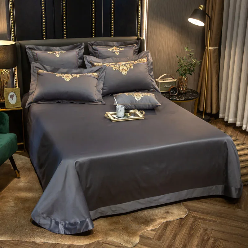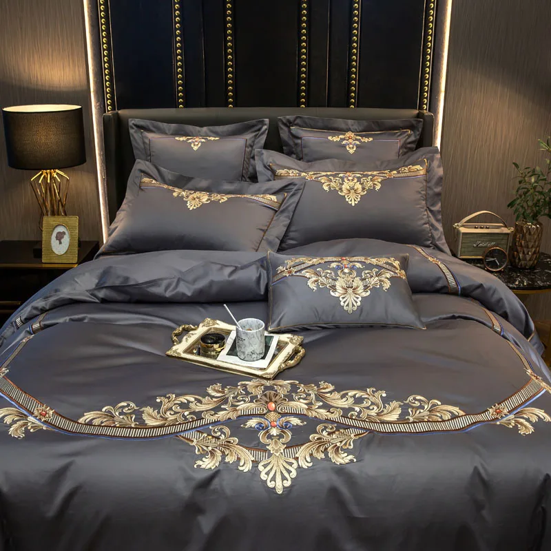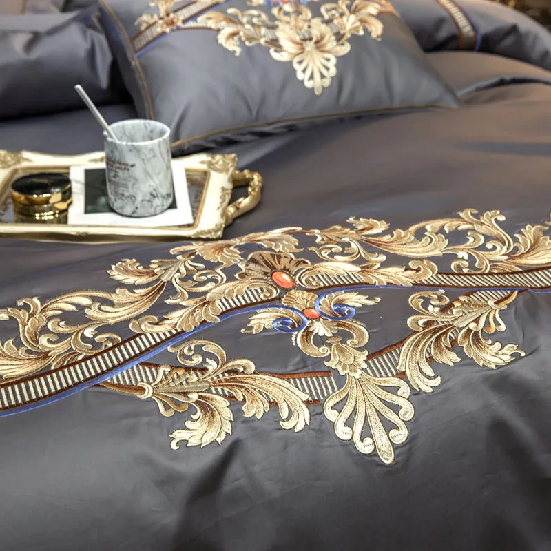 Special Offer Cinza Requintado Bordado Conjunto De Cama Luxo 100s Algodão Egípcio Sedoso Tamanho Duplo Folha Fronha Capa Edredão 4/6 Pçs Discount (25%OFF) Today!