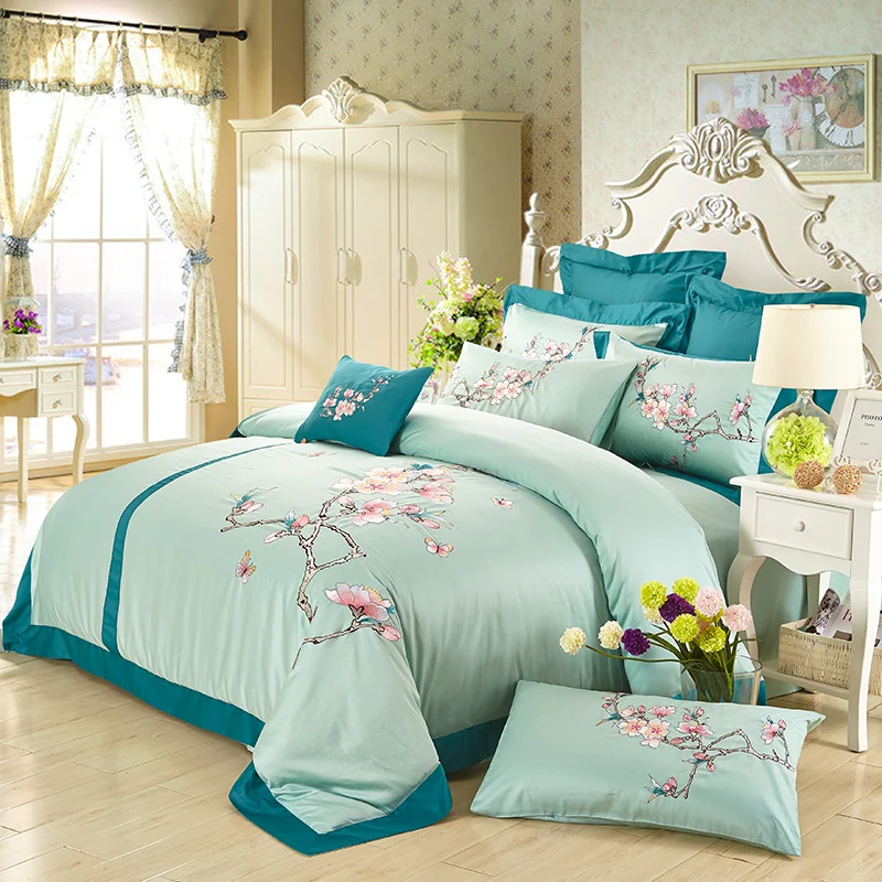 Special Offer 100% Egito Algodão De Seda De Luxo Conjunto De Cama Rainha Rei Bordado Real Azul Jogo De Cama Capa De Edredão Roupa De Cama Fronhas 4/6 Pcs Discount (40%OFF) Today!