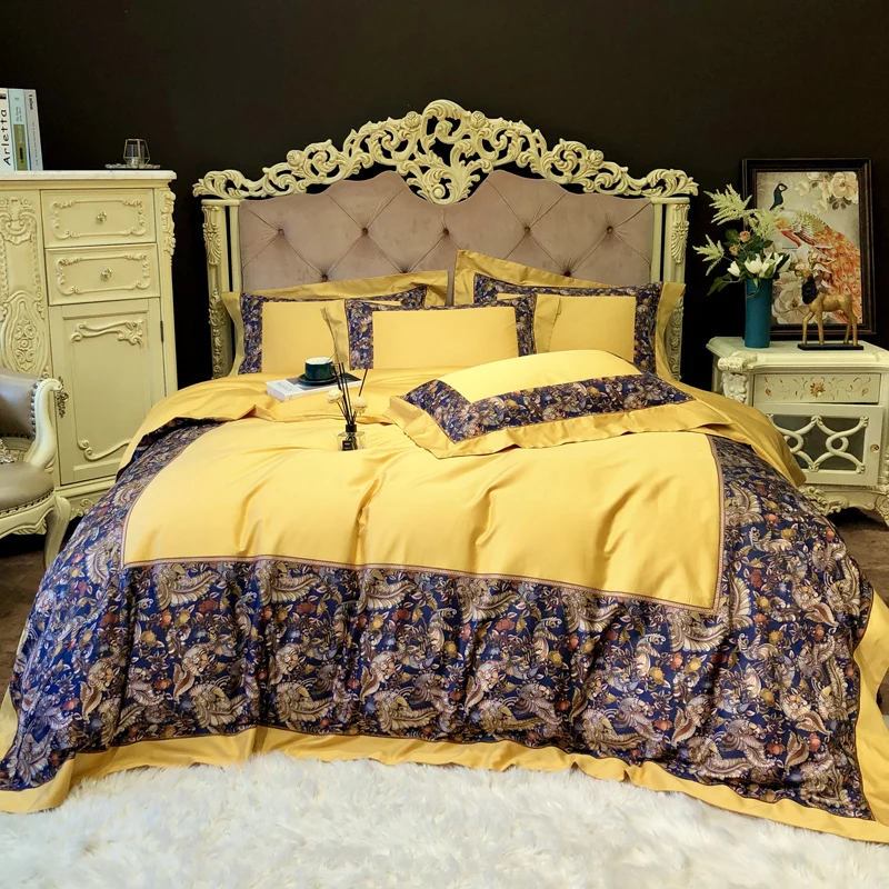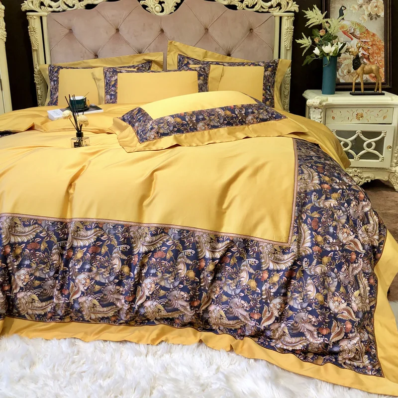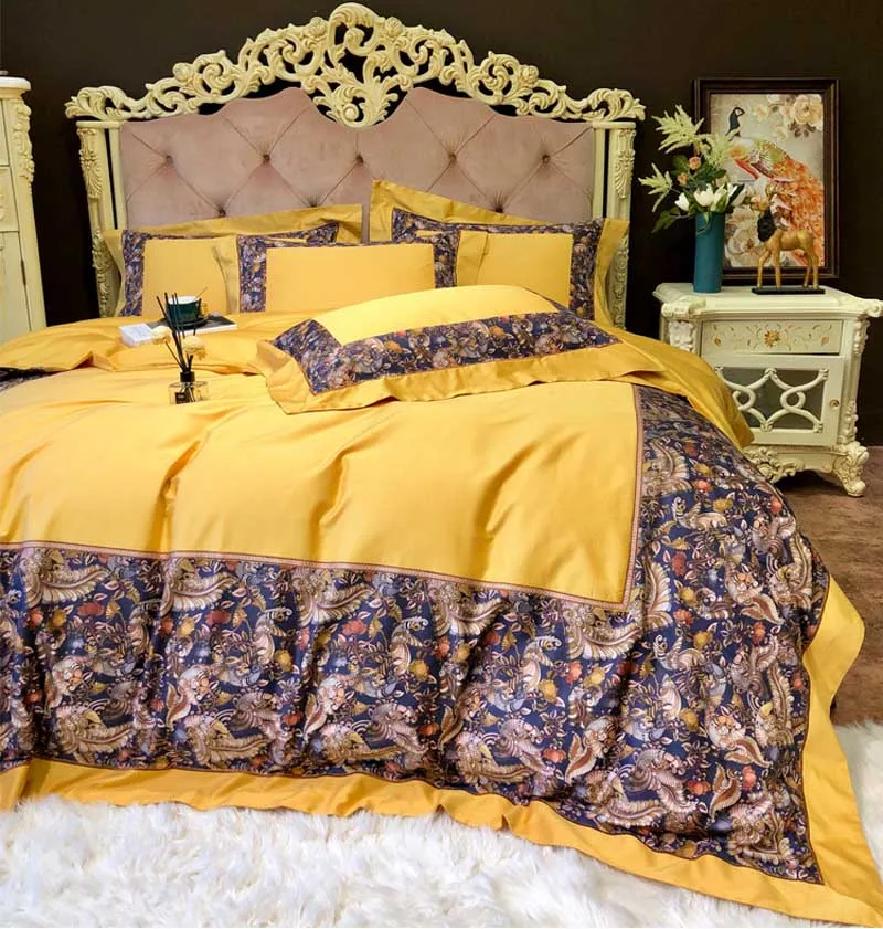 Special Offer Nova Impressão Digital 100S Algodão Egípcio De Luxo Real Amarelo Conjuntos De Cama Rainha Rei Capa De Edredão Conjunto De Folhas De Cama Fronhas 4pc Discount [NEW!!] Today!
