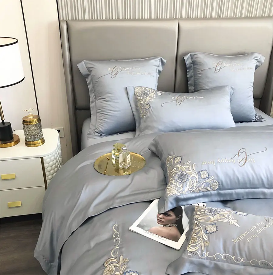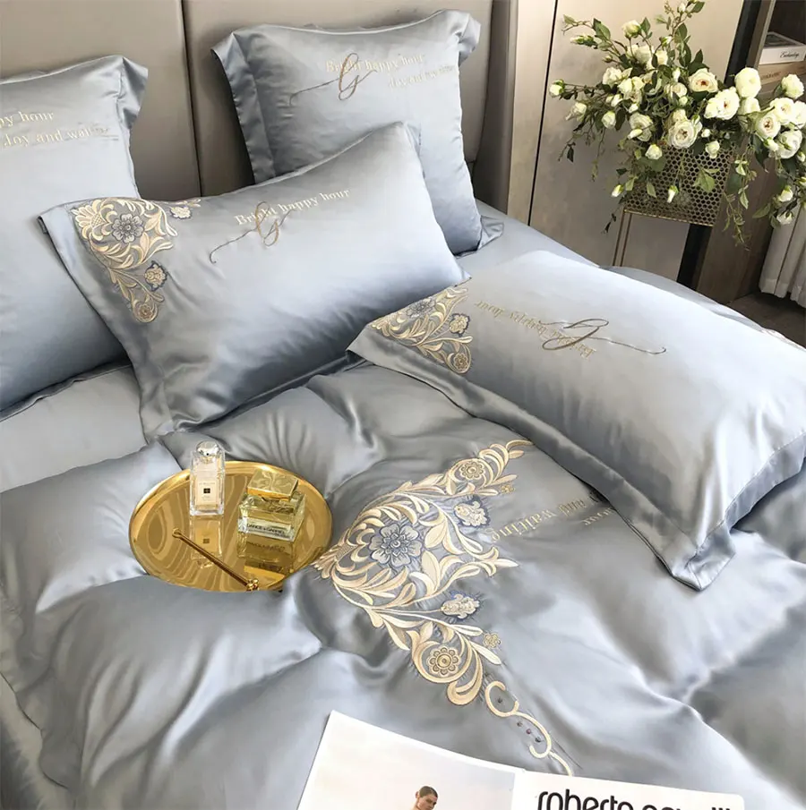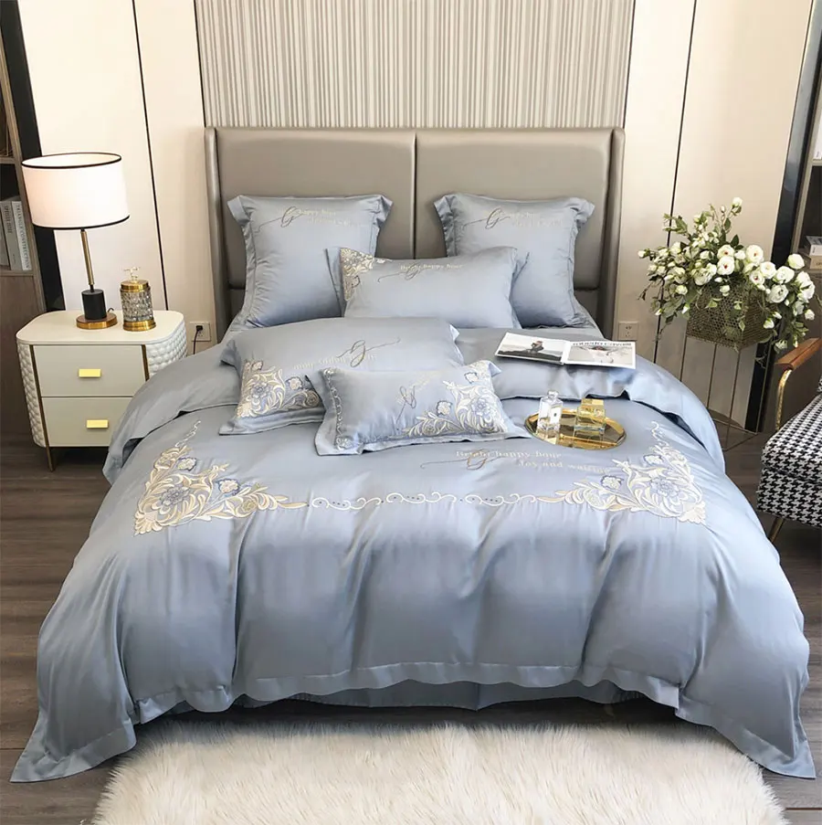 Special Offer Pastoral Flor Azul Rosa Jogo De Cama, Europeu Americano Bordado Completa Rainha Rei Casa Têxtil Folha Fronha Colcha Capa Discount [NEW!!] Today!