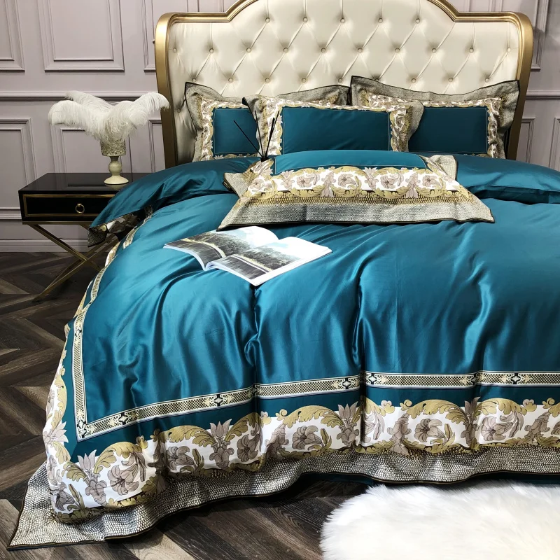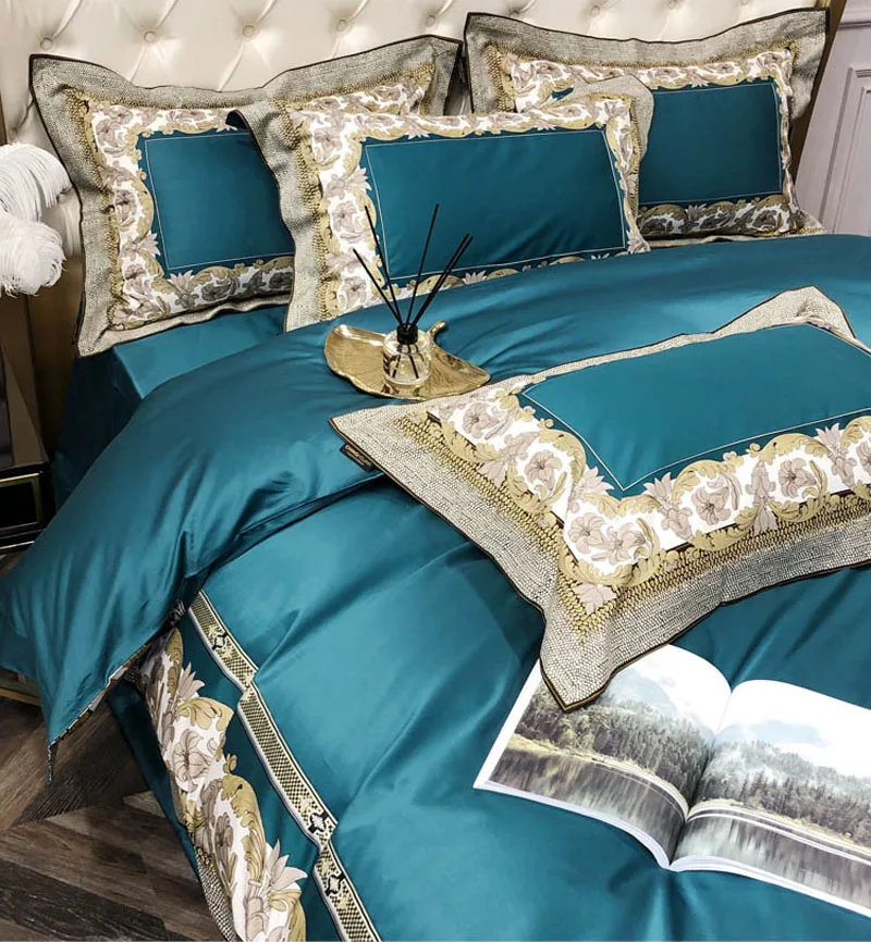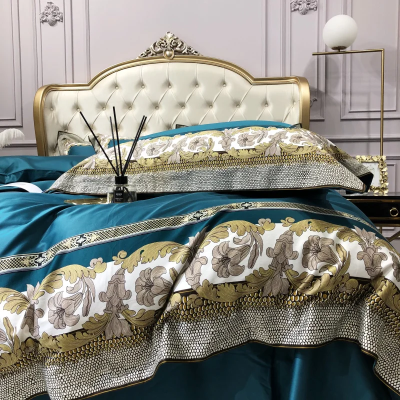 Special Offer Azul De Luxo De Nova Impressão Digital 100S De Algodão Egípcio Conjuntos De Cama Real Rainha Rei Capa De Edredão Conjunto De Folhas De Cama Fronhas 4pcs Discount [NEW!!] Today!
