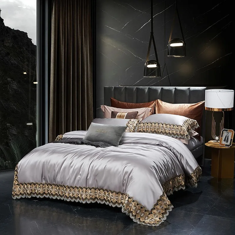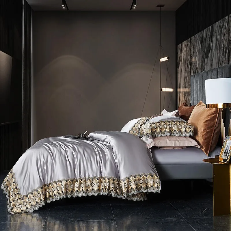 Special Offer Luxo Chique Rendas Conjunto De Cama Rainha Rei Tamanho 4/6 Pçs Rendas Capa Edredão Folha Fronhas Cetim Seda Algodão Egípcio Discount (25%OFF) Today!