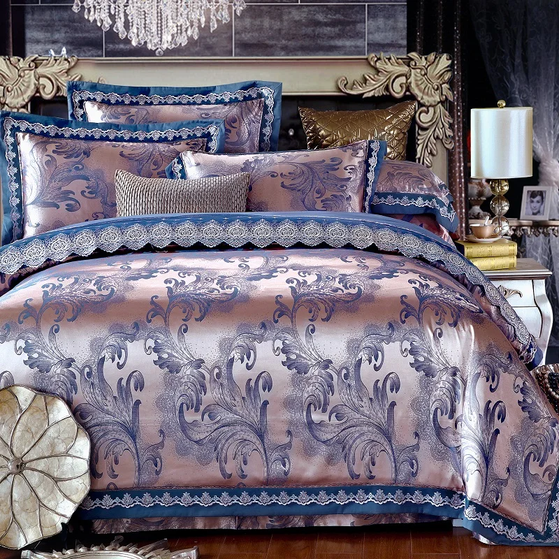 Special Offer 4/6 Pçs Prata Ouro Azul Luxo Cetim Jacquard Jogo De Cama/roupa Cama Rainha Tamanho Rei Rendas Capa Edredão Folha Conjunto 42 Discount [NEW!!] Today!