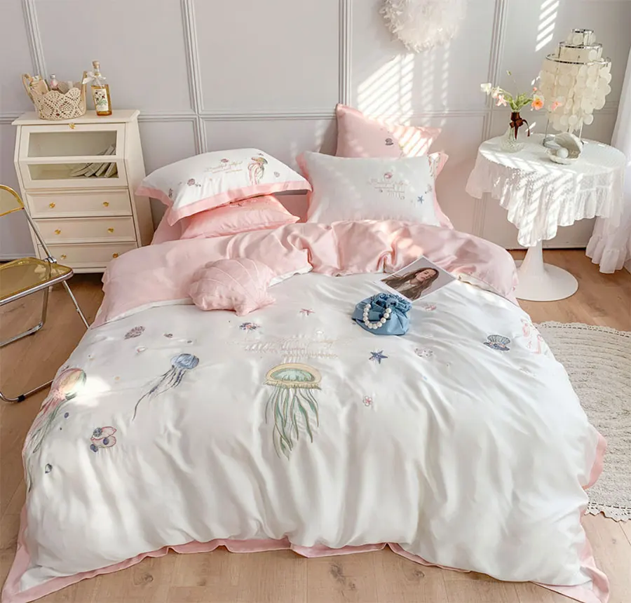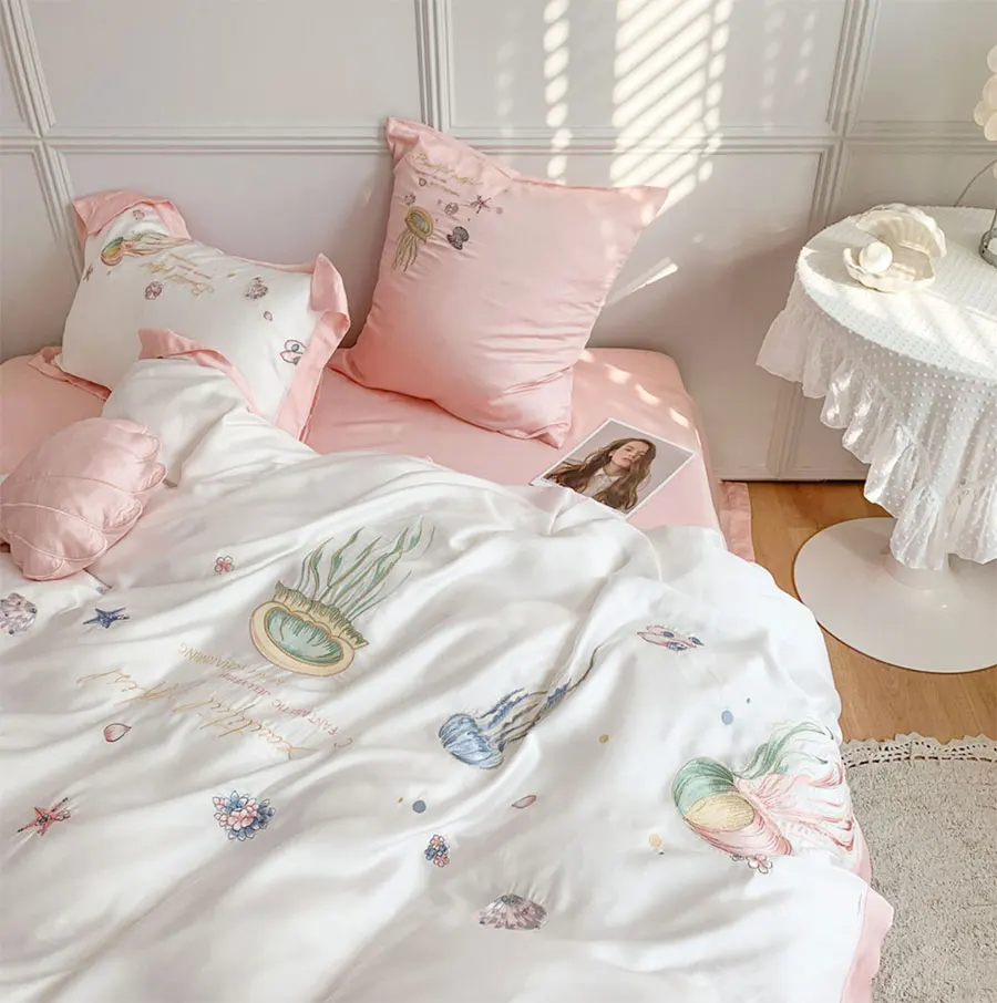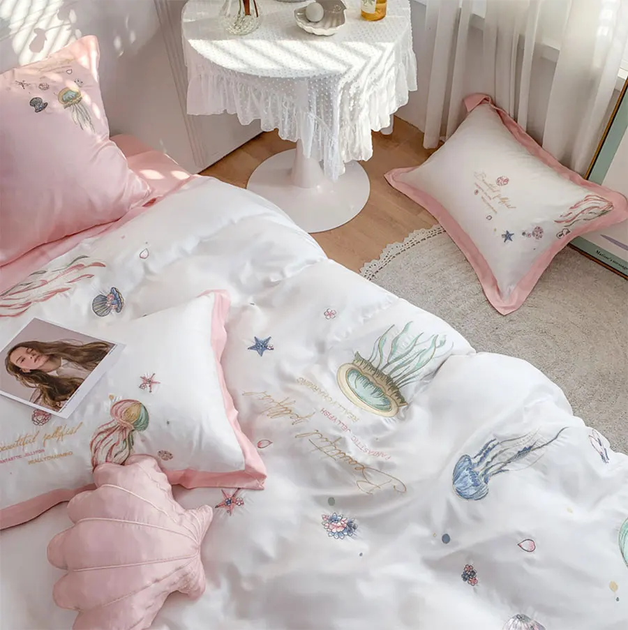 Special Offer Bonito Dos Desenhos Animados Jellyfish Azul Rosa Conjunto De Cama, 60s Moda Completa Rainha Rei Casa Têxtil Folha Fronha Capa Colcha Discount [NEW!!] Today!