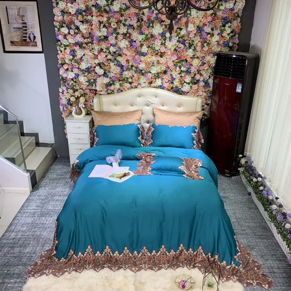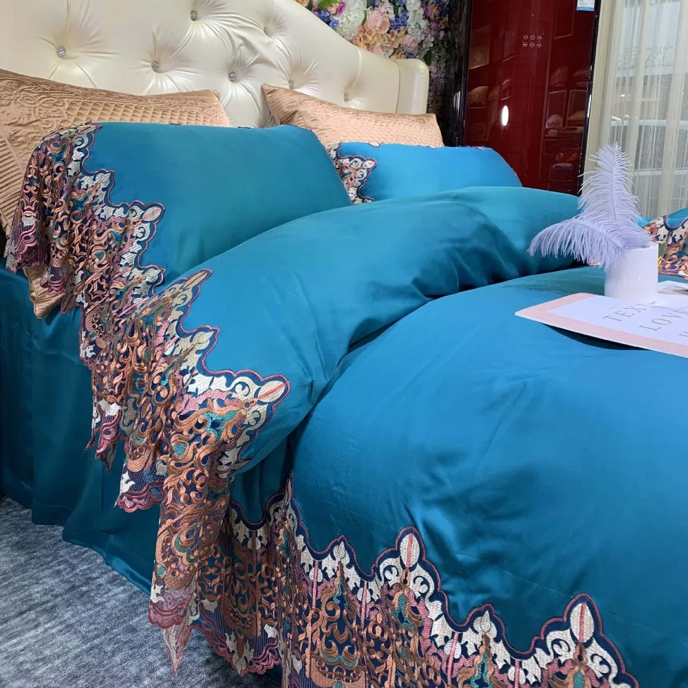 Special Offer Nobre Azul 80 S Tencel Bordado Borda Do Laço Conjuntos De Cama De Luxo Rainha Rei Capa De Edredão Folha De Cama Real Definir Europa 4/6 Pcs Discount [NEW!!] Today!